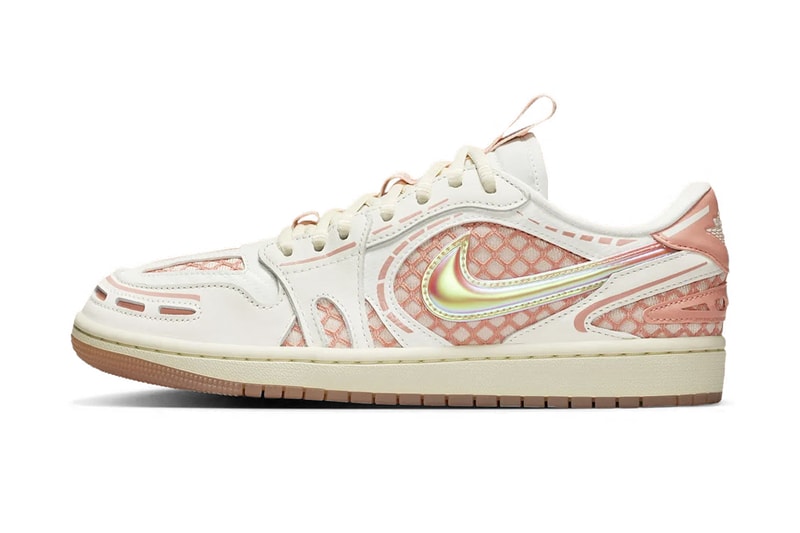 Dubbed “Sail/Washed Coral,” this women’s exclusive arrives in a distinct summery palette. The upper features an off-white, leather-like finish. “Washed Coral” accents introduce both textural and color contrasts, appearing on open diamond mesh, various overlays and as subtle color pops. This summery hue is further elevated by an iridescent finish on the Swooshes, adding a captivating shimmer.