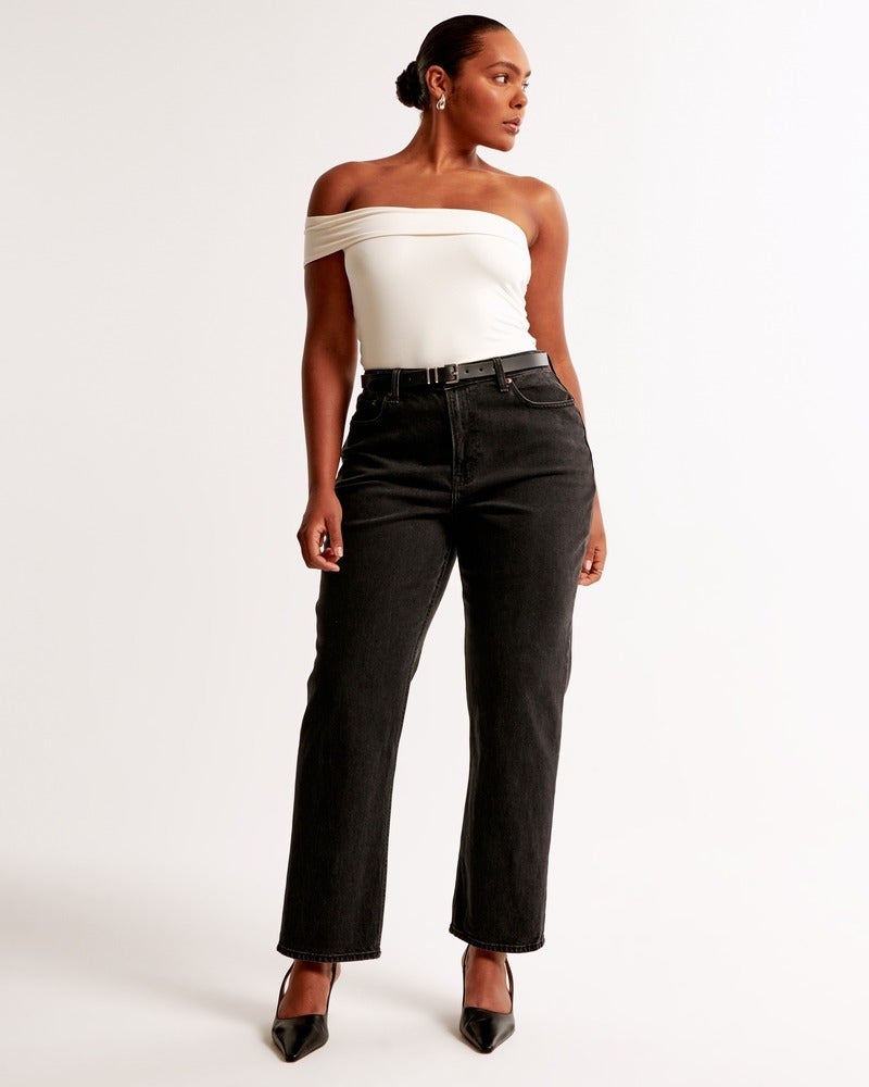 Abercrombie & Fitch Curve Love High Rise Vintage Straight Jean, $, available at Abercrombie & Fitch