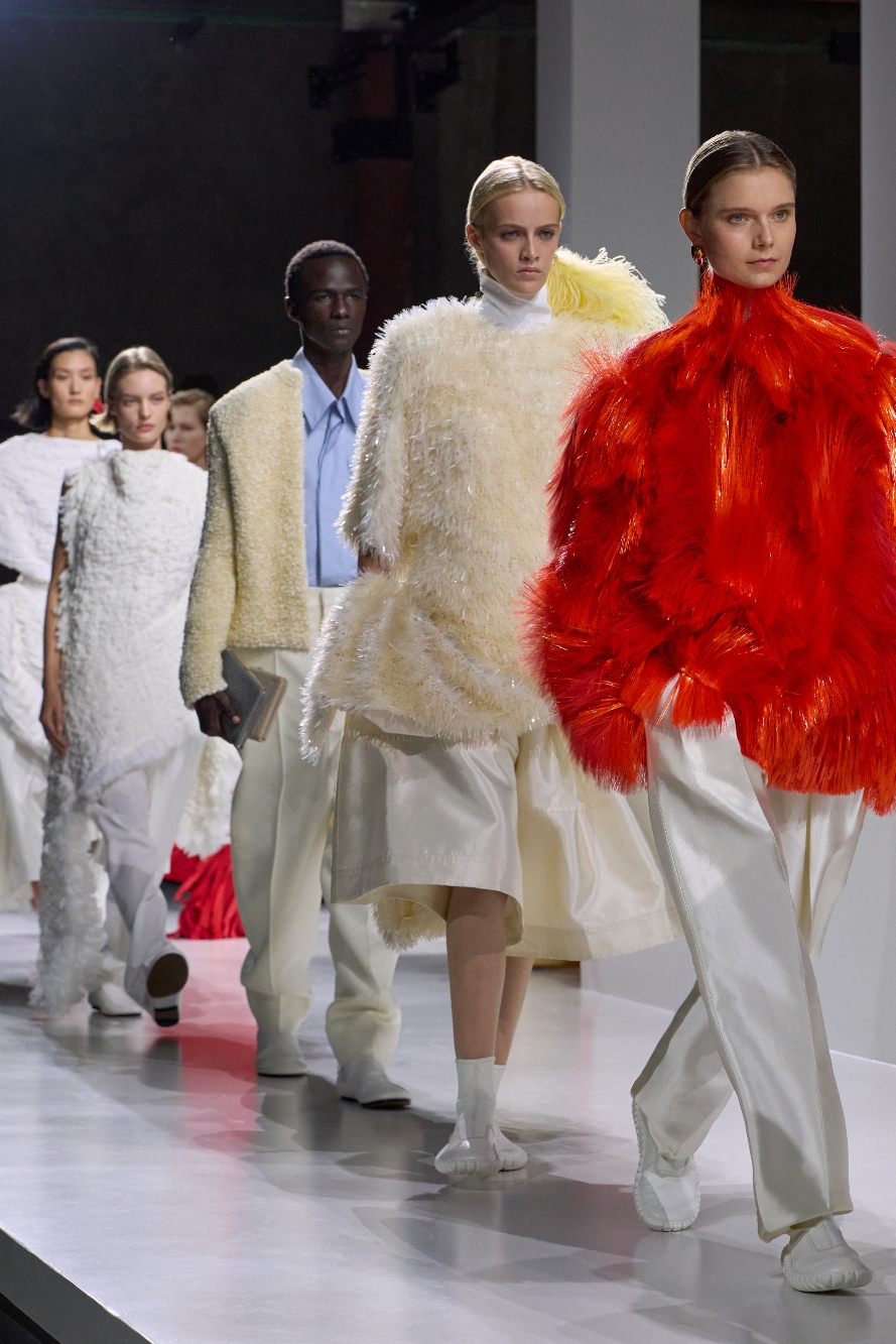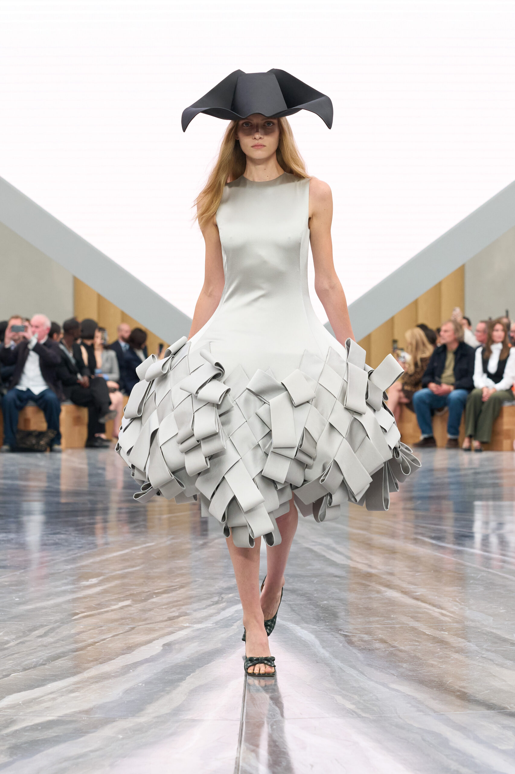 For her first collection at Bottega Veneta, Louise Trotter reflected on the stratification of the house’s histories while embracing “the romance of process”. Trotter looked at Laura Braggion’s journey when she was at the helm of the Italian Maison as its first female creative lead from the 1980s to the early 2000s alongside the development of the Intrecciato design on bags by cofounder Renzo Zengiaro. Classic styles of Bottega’s bags were revived and reborn with new proportions for the “Lauren”, the Knot was reimagined with a soft structure and the Cabat could be cut away to form a clutch, its triangular underpinnings informing the construction of the collection’s clothing. These temporal design shifts — together with transposed techniques — also paved the way for new additions such as the Squash, the elongated Framed Tote and the Crafty Basket, all unified by the signature soft functionality that defines Bottega Veneta.