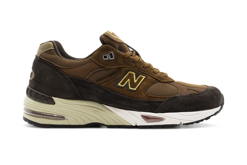 Uppers are made of a chocolate brown mesh that’s overlaid on the top half with similar tones of suede and leather. Moving down, an even darker brown is used on the suede mudguard. Hits of gold detailing are present on the midfoot’s N logo and the tongue tag, with a brown 991 graphic gracing the heel. If you look inside the collar, you’ll see a festive red tag on the inside of the tongue and a CNY spellout on the insole. On the shoe’s bottom half, two-tone ABZORB midsoles combine with durable rubber outsoles to complete the look by mixing cushioning and support.