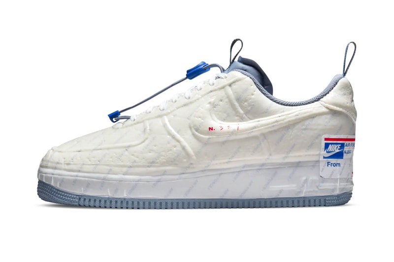 Openly drawing from the iconic tones of the USPS, the reimagined AF1 model is dressed with a clean white molded marked by “Air Force 1” throughout. Additional detailing comes in the form of “Ashen Slate” on the inner liner and padded tongues, while “Game Royal” hits are introduced with the toggle pull underneath the traditional lacing. Aside “N.354” applied on the midfoot Swooshes, branding is expressed through shipping labels at the heel, upside-down “NIKE AIR” embroidery at the rear and printed insoles. Elevating the shoe is a white tone midsole and contrasting gray rubber outsole.