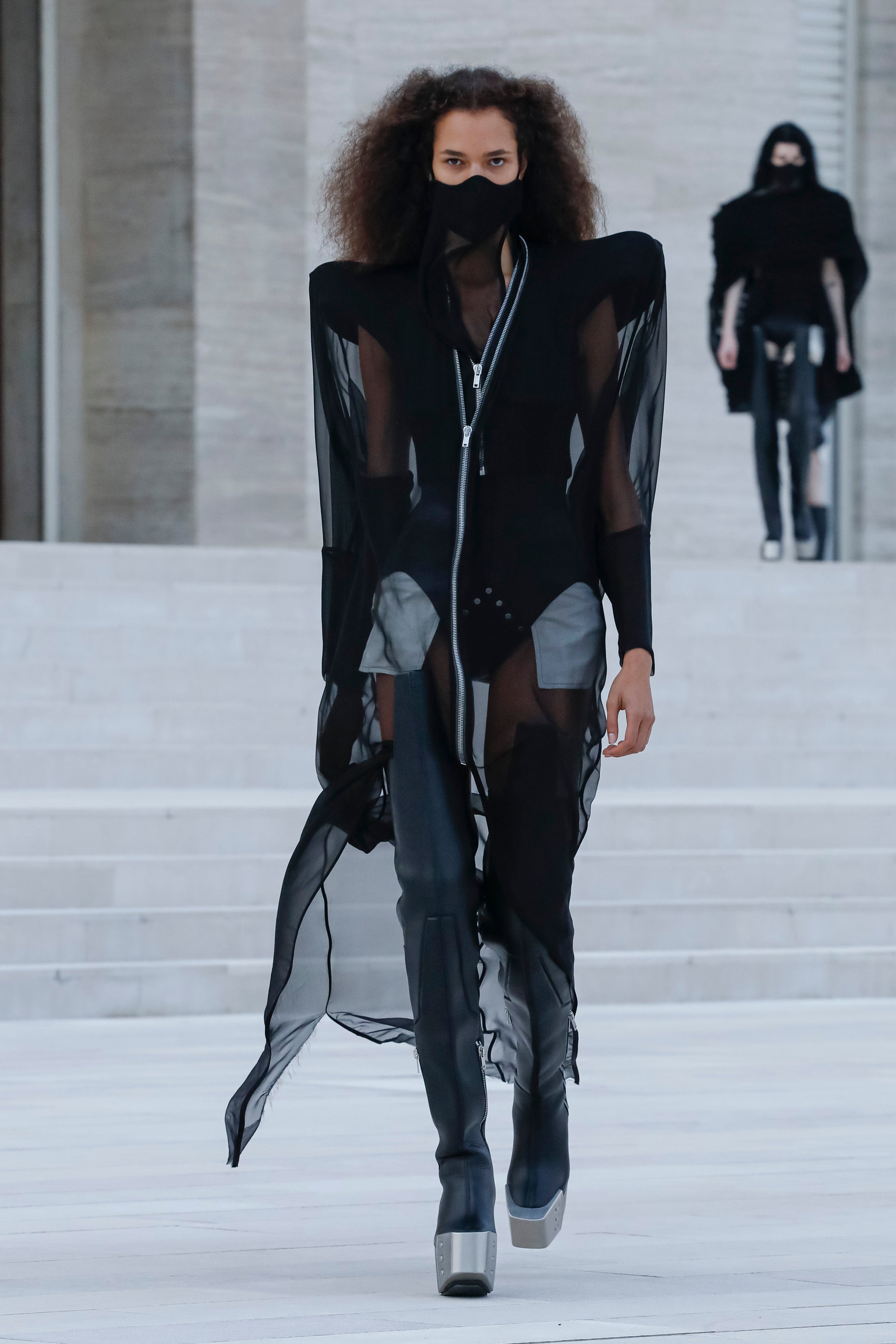 At Rick Owens, Marine Serre, Rokh, Maison Margiela, and more, the bleakness of the last seven months was transformed into something beautiful. Big shoulders, face coverings, and gothic colors, silhouettes, and backgrounds made for fashion that was an escape. Not an escape from reality (after all, our reality is pretty dark right now), but rather, an escape from the faux normalcy that so many designers have been pushing for this season.