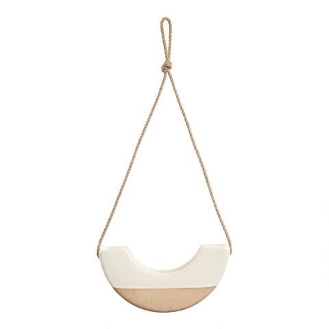 Cost Plus World Market Ivory And Tan Half Circle Modern Hanging Planter, $, available at