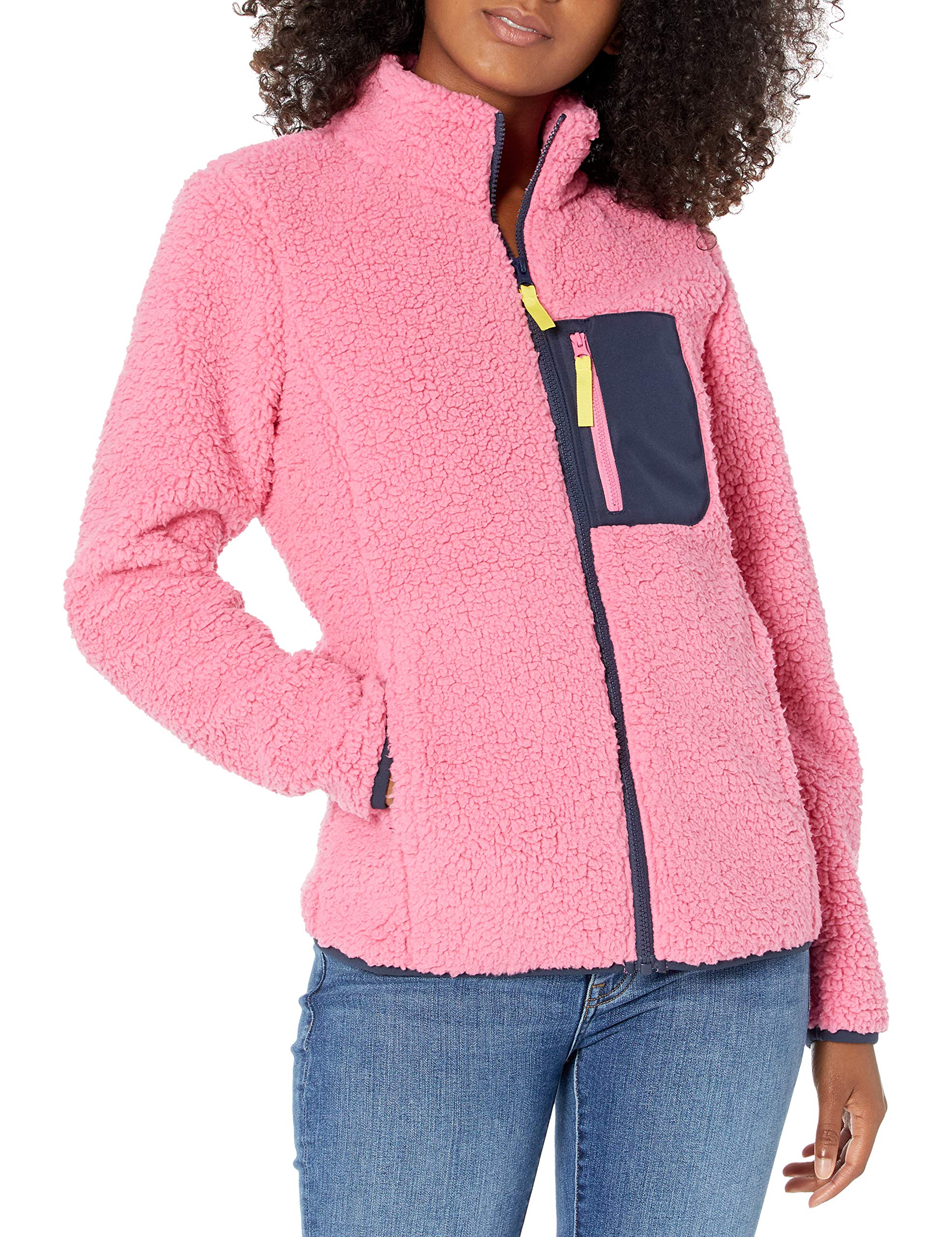 Amazon Essentials Sherpa Long Sleeve Mock Neck Full-Zip Jacket With Woven, $, available at Amazon