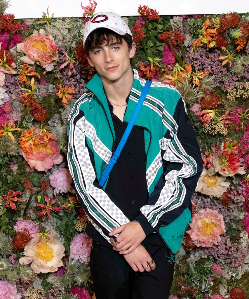 For the star-studded event — which was also attended by Spike Lee, Amina Muaddi, and Maria Bakalova, among others — Chalamet wore (shocker!) Louis Vuitton in the form of an ‘80s-inspired teal track jacket from the spring ‘22 menswear collection, as well as two locket bracelets that designer Virgil Abloh made in partnership with UNICEF. Polishing off the laissez-faire look, he added floral Louboutin sneakers and a Cincinnati Reds baseball cap covered in tiny roses.
