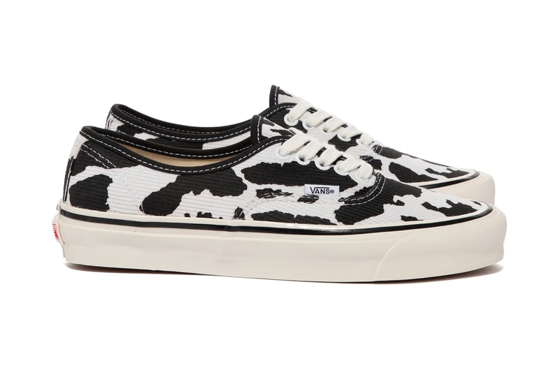 Following a needlepoint knit Authentic 44 DX capsule, Vans Vault revives its Authentic 44 silhouette in cow-print patterns, paying tribute to its original Anaheim Factory.