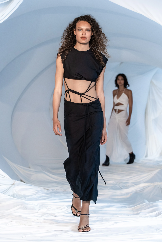Now, with summer around the corner and a returned sense of excitement in the air, this bare-all mentality is leaving the runways and at last entering our real-life wardrobes. According to digital shopping platform ShopStyle, a number of brands that debuted midriffs in their spring collections experienced significant year-over-year search growth upon the season’s arrival, including Orseund Iris (up 100%), Christopher Esber (53%), Jacquemus (24%), and Jonathan Simkhai (14%). Compared to last year, search for “crop tops” and “cut out tops” has increased by 40% and 75%, respectively. “The exposed midriff is here to stay,” says Alison Stiefel, the general manager at ShopStyle. “Early indicators are showing this trend is evolving. We expect midriff floss styles to be one of the top fashion trends of the [spring and] summer.”