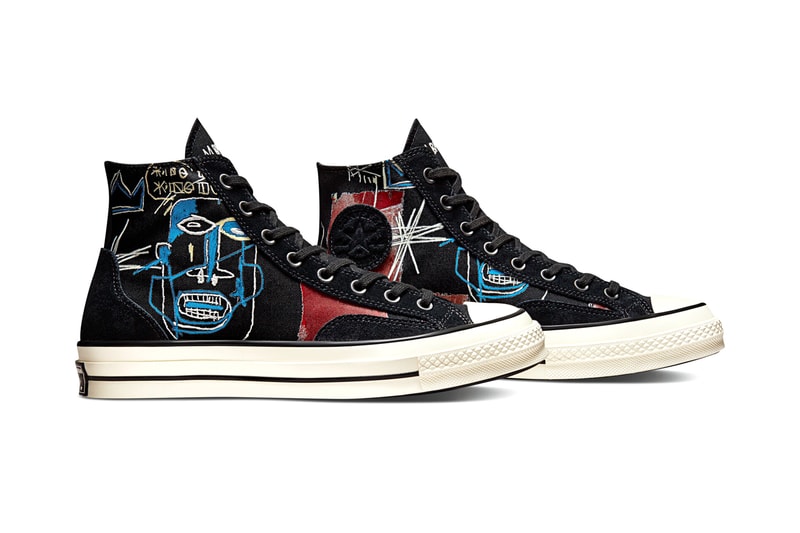 Centered around Basquiat’s works such as Kings of Egypt III, Kings of Egypt II, Pez Dispenser and Untitled (World Famous), the series is composed of the iconic Chuck Taylor All Star and Chuck 70, as well as the, resurfaced Skidgrip silhouette with each representing a certain painting. Along with the footwear designs, a lineup of apparel such as crewnecks and t-shirts are coupled in the release.